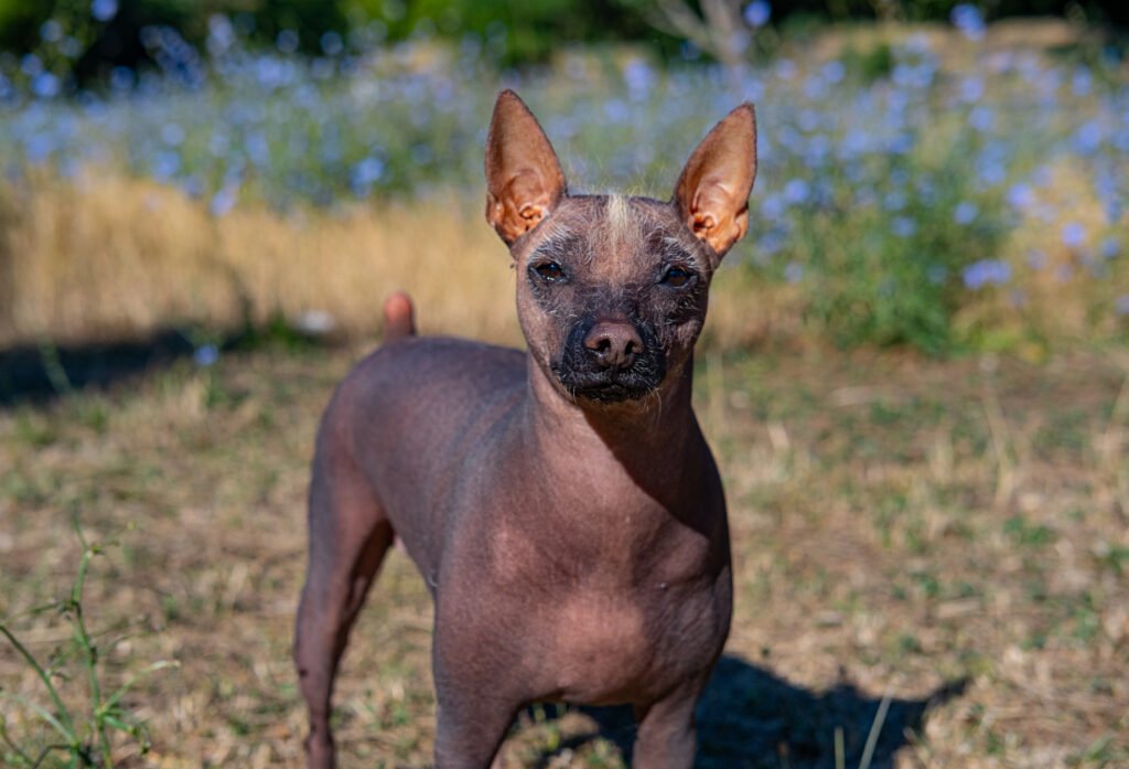 The Xoloitzcuintli, also known as the Mexican Hairless Dog, comes in three sizes: toy, miniature, and standard. They are recognized for their striking appearance due to the lack of fur, which means they require special care for their skin.