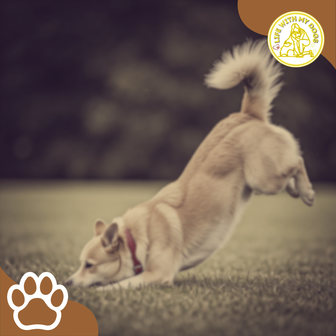 Dogs have special ways to say, “Let’s play!” The play bow is a big one. That’s when a dog puts their front end down and rear end up. During play, dogs might show their belly or let the other dog chase them. These are signs of trust and fun.