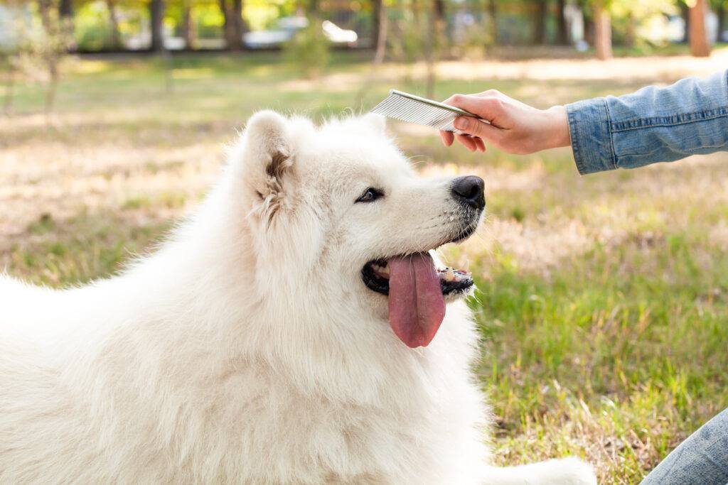 - Weekly Brushing: Brush your dog’s coat weekly to remove dirt and prevent matting, which is particularly important for white coats as they can show dirt more easily.
